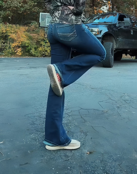 Boho Lace Corset White Flare Sleeves Western Wedding Dress with Slit