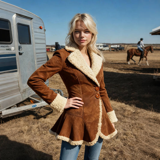 Women's Retro Curved Hem Irregular Bevel Design Lambswool Lapel Mid-Length Jacket Top
