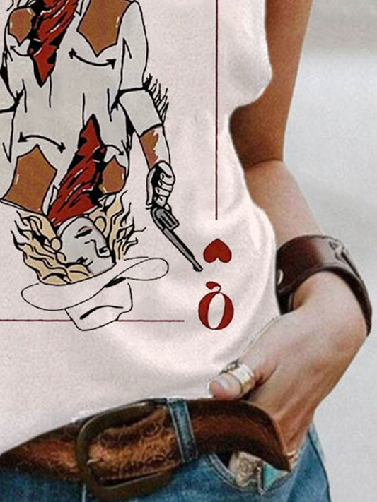 Women's Western Style Retro Queen Print Casual Round Neck T-Shirt