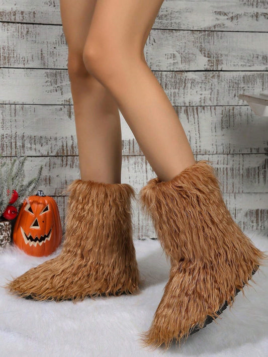 Women's Winter Fluffy Faux Fur Outdoor Ankle Snow Boots