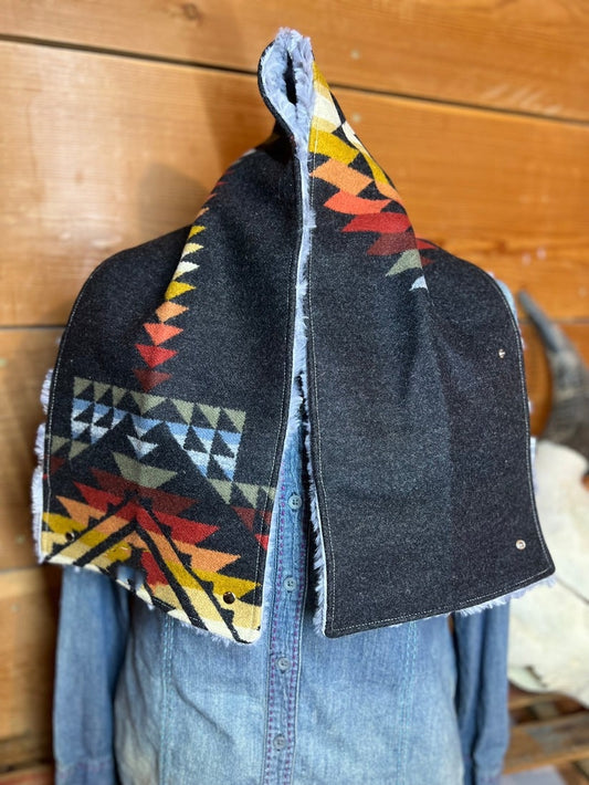 Women's Western Cowboy Navy Aztec Warm Neck Hood