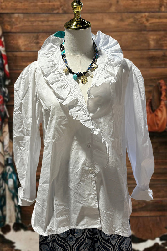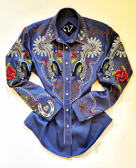Vintage Wild West Printed Ruffled Sleeveless Shirt