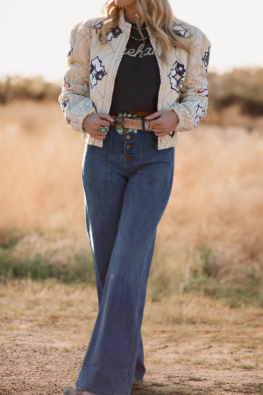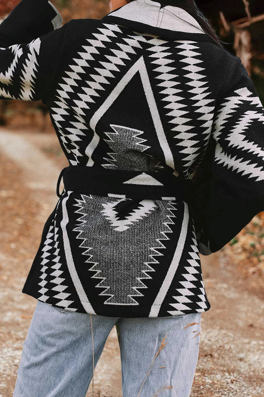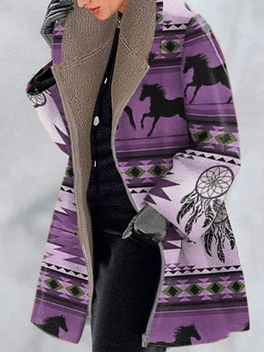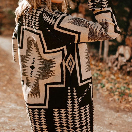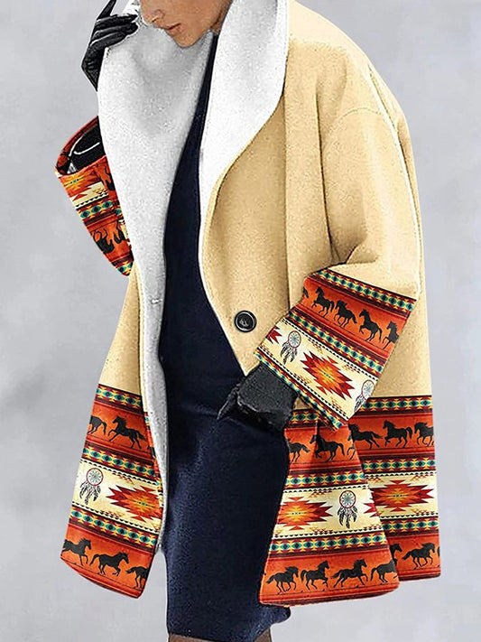 Retro Western Aztec Pattern Shirt Collar Trench Coat