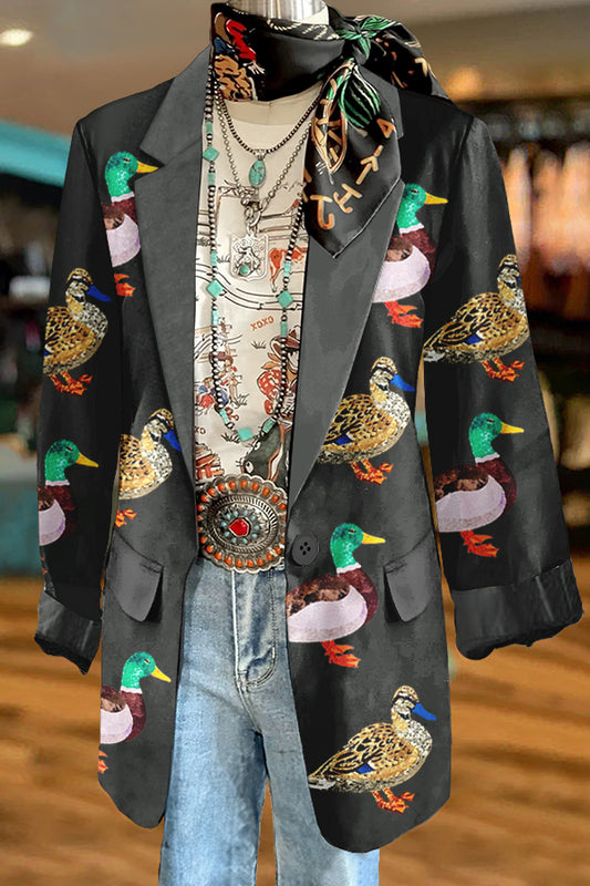 Women's Cactus and Ox Skull Print Slim Fit Suit Jacket
