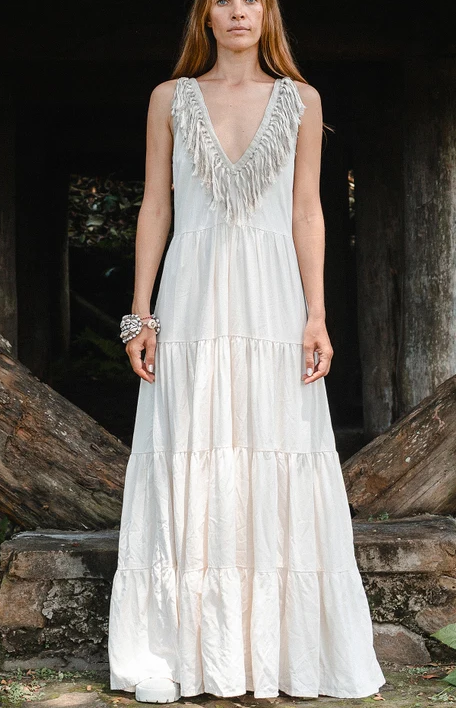White Maxi Boho Dress ▲ Women’s Clothing Cotton Goddess Dress ▲ Layered Fringe Dress ▲ Prom Dress ▲ Boho Wedding Dress ▲ Backless Tank Dress