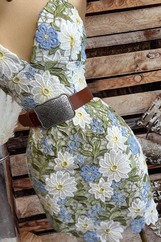 Beautiful Lace Flower Multi Color Mini Dress