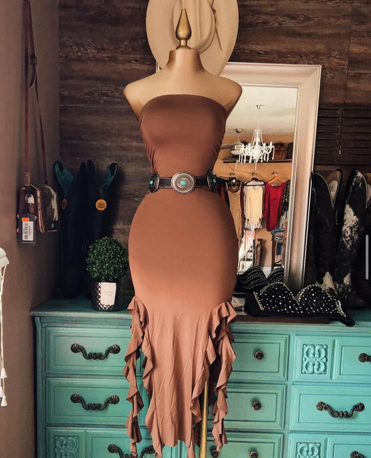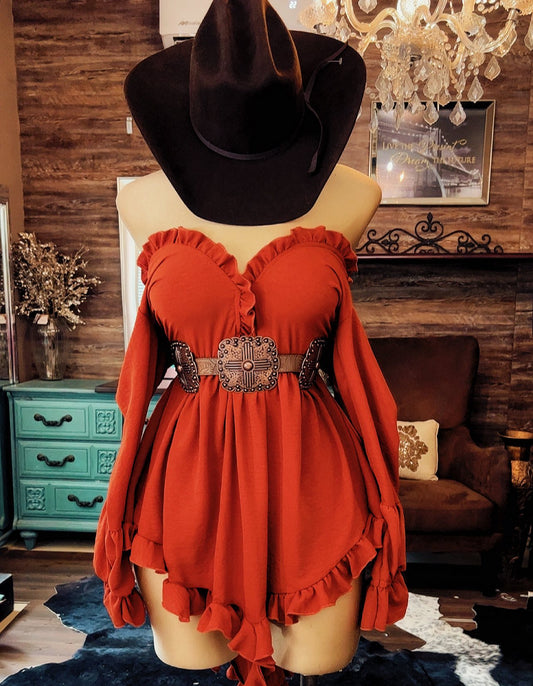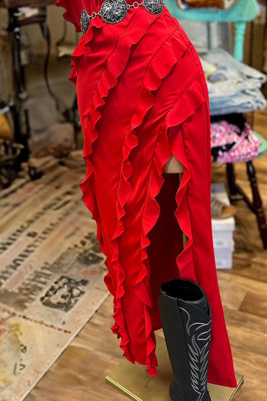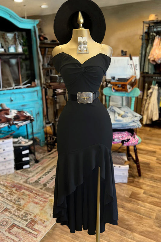 Western Ruffle Off-Shoulder High-Low Dress
