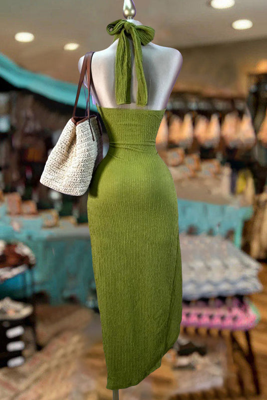 Crossover Halterneck Knitted Slit Dress