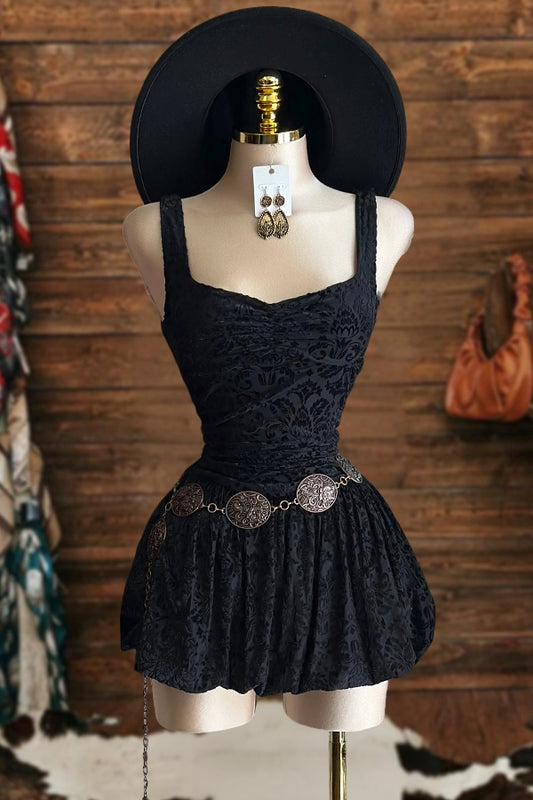 Floral Bud-Hem Velvet Mini Dress