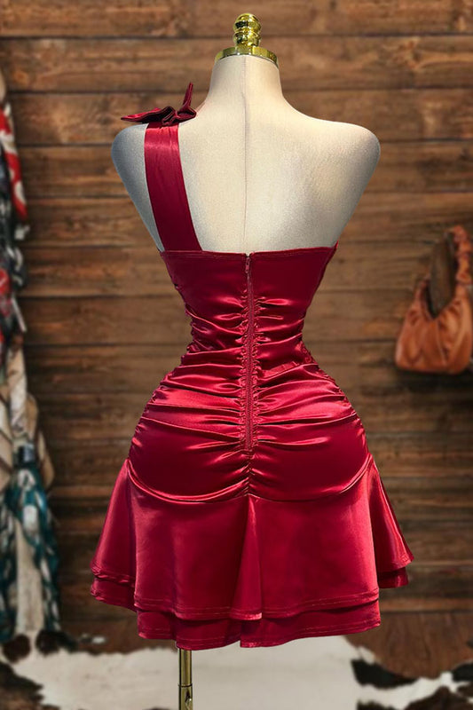 One-Shoulder Bow Ruffle Mini Dress