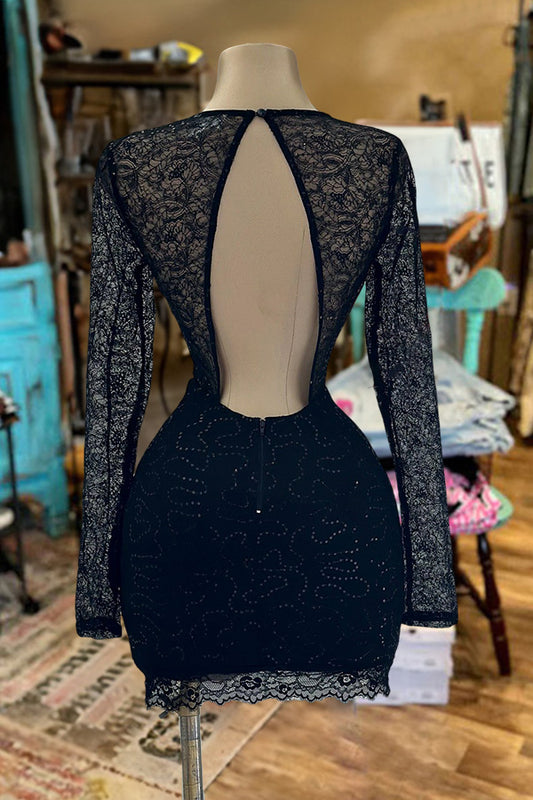 Lace Sequin See Through Mini Dress