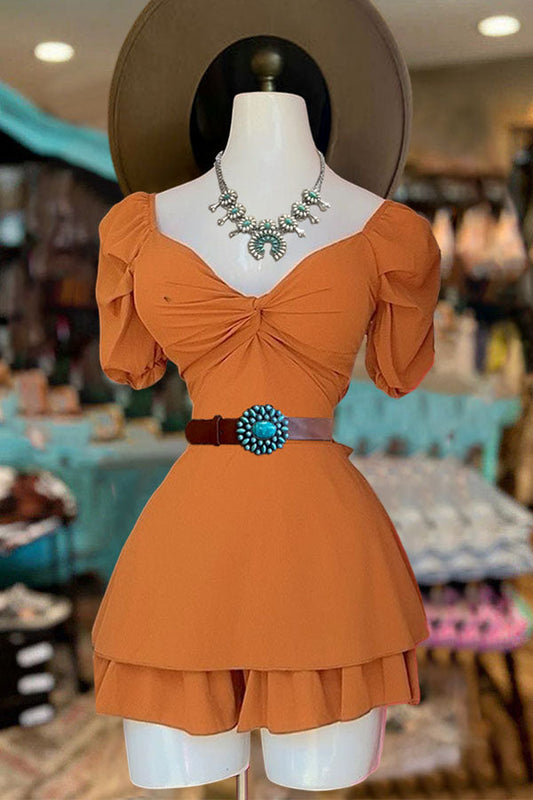 Elegant puff sleeves backless mini dress