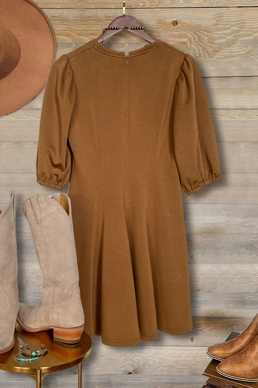 Retro V-Neck Ruffle Hem Half Sleeve Dress