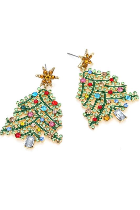Rhinestone Christmas Tree Pattern Earrings