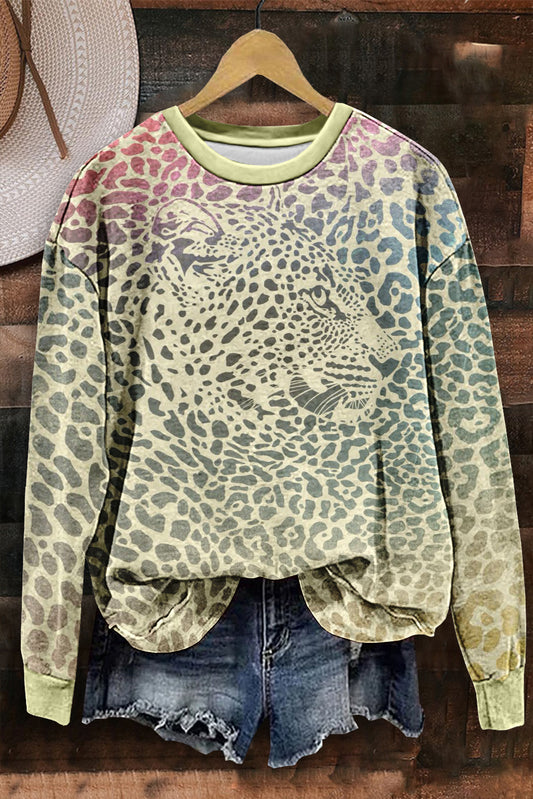 Leopard Print Ruffle Neck Long Sleeve Top