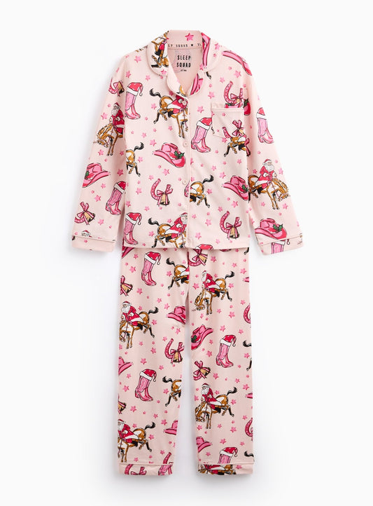 Pink Christmas Horses Printed Pyjamas Set