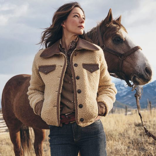 Women's Vintage Rustic Elegance: Leather And Shearling Jacket In The Wilderness