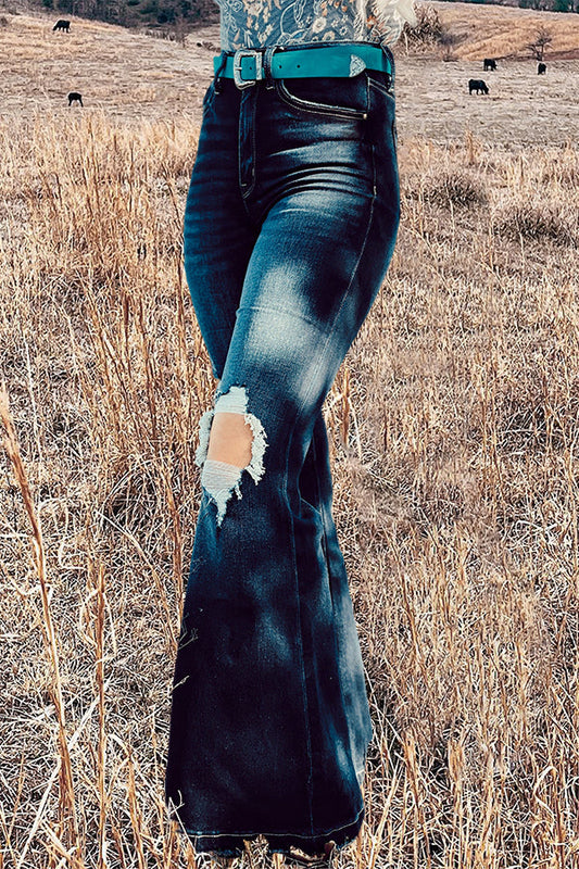 Casual Distressed Flared Jeans