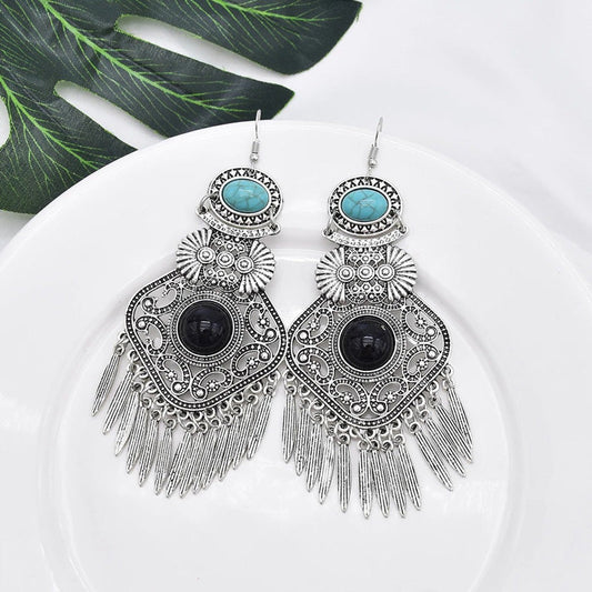 UR Ethnic Embroidery Half Button Puff Sleeve Casual Blouse