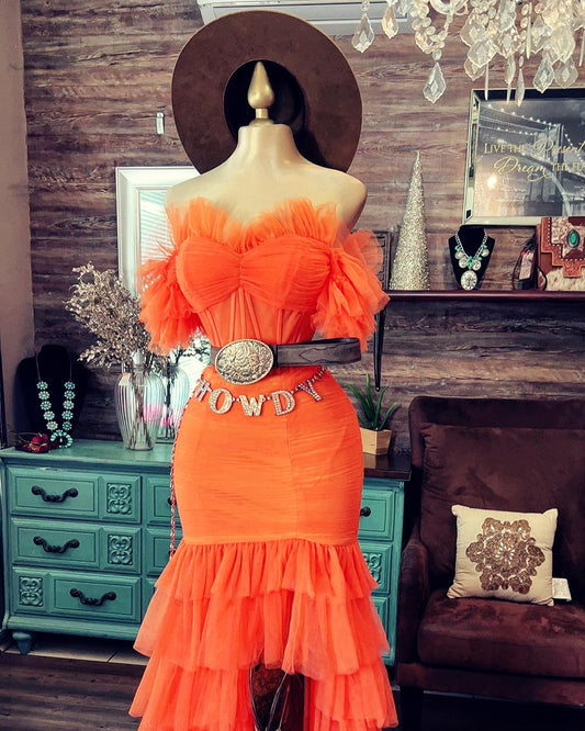 Western Boho Ruffle Halter Dress – Caramel Brown