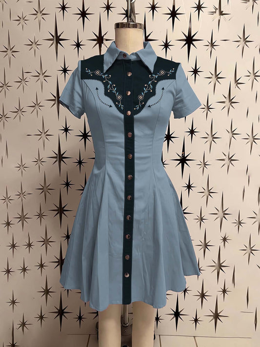 Western Vintage Flower Printed Western Printed Shirt Dress