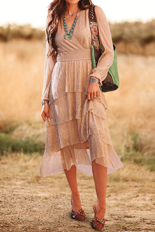 Ditsy Floral Layered Ruffle Lantern Sleeve Dress