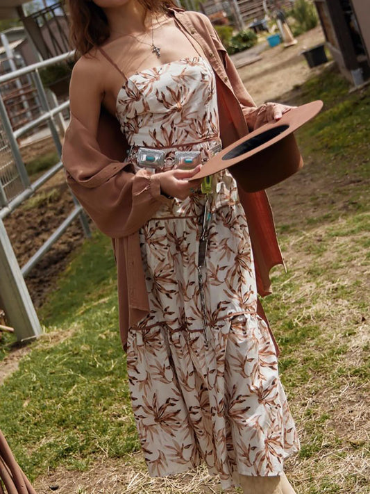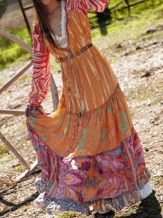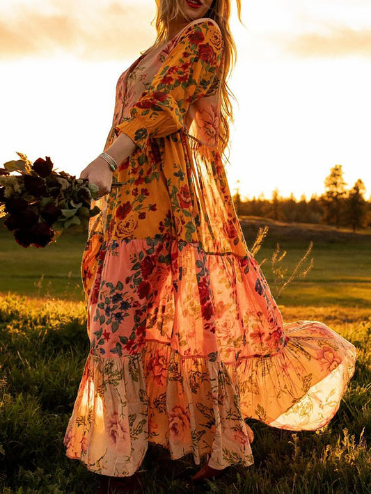 Vintage Boho Floral Tie Dye Print Dress Dress