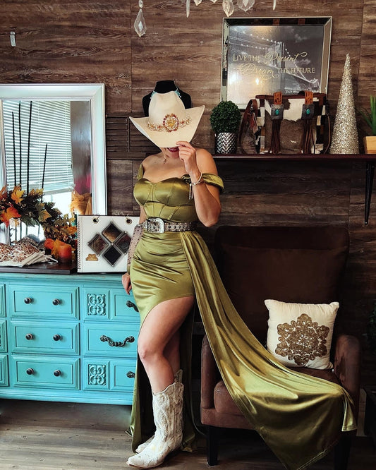 Prom Dresses Off Shoulder Beaded Evening Gowns Satin Mermaid with Slit V Neck Dress