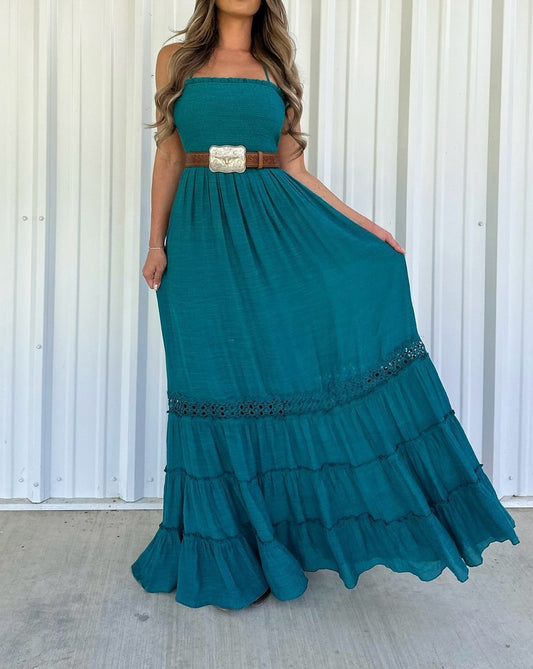 Vintage Charming Studded Velvet Buttoned Maxi Dress