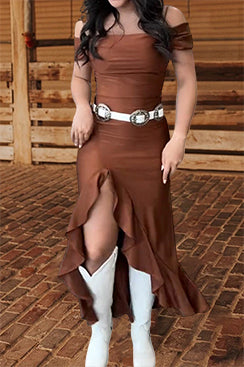 Women's 2025 Boho Sexy Off Shoulder Long Sleeve Dress