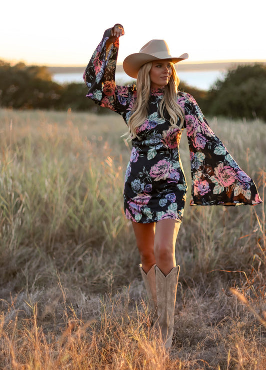 Women'S Vintage Western Flower Cowboy Print Shirt Dress