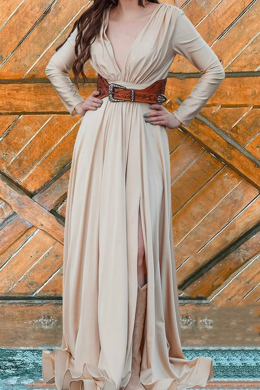 Women's Exquisite Pattern V-neck Fashionable High Slit Dress