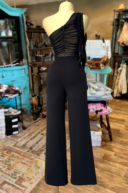 Beautiful One-Shoulder Pleated Wide-Leg Jumpsuit
