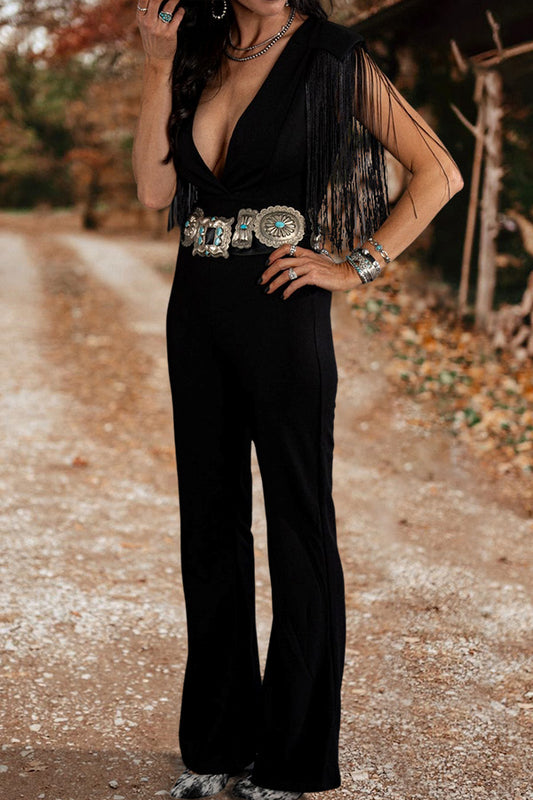 Black 3/4 Sleeve V-Neck Jumpsuit