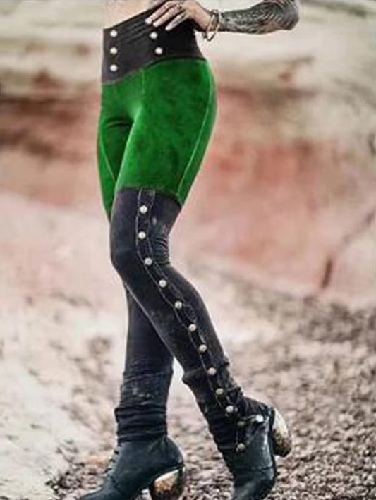 Daily High Waist Studded Colorblock Slim Fit Pencil Pants