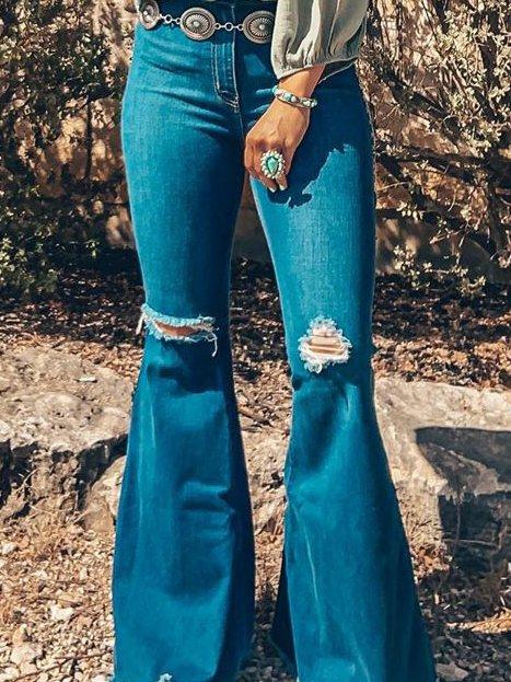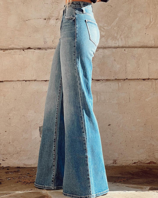 Women's Washed Blue High-waisted Casual Wide Leg Pants