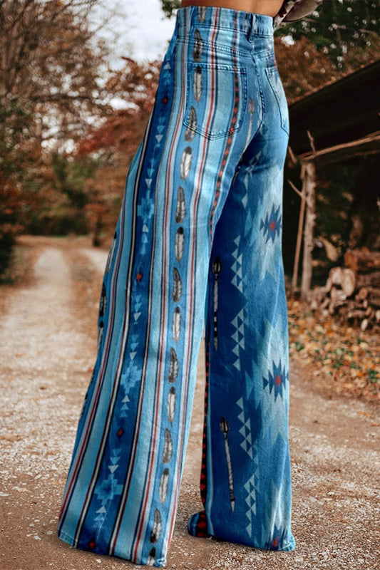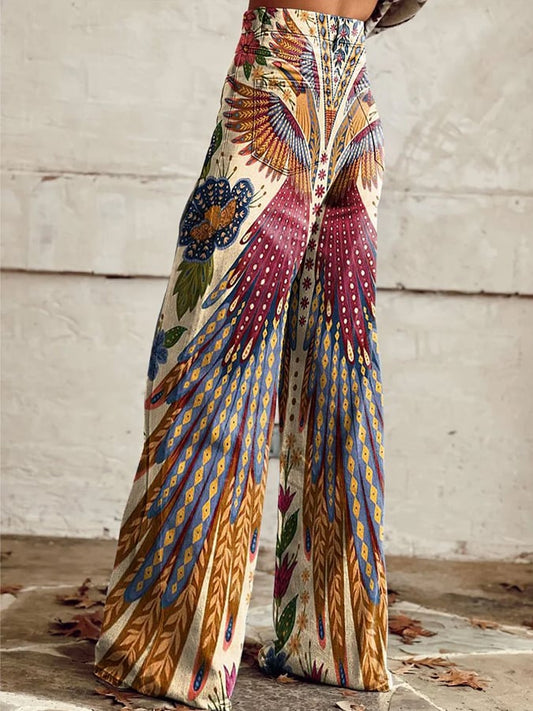 Women's Retro Pattern Print Casual Wide Leg Pants