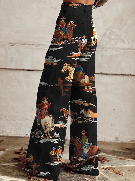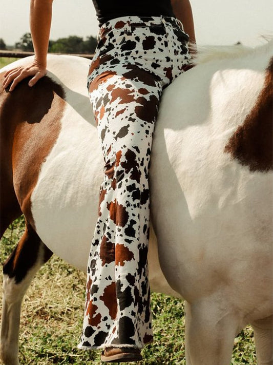 Women's Western Ethnic Cow Print Casual Flared Pants
