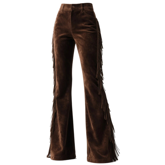 Vintage Western Women's Suede Tassel Flared Wide-Leg Pants