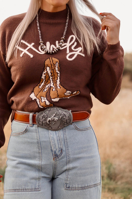 Blue Western Print Knit Turtleneck Pullover Sweater