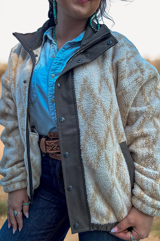 Women's Retro Red Gradient Aztec Art Print Casual Sherpa Coat Cardigan