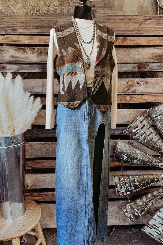 Women'S Western Vintage Cowboy Killer Print Casual Vest