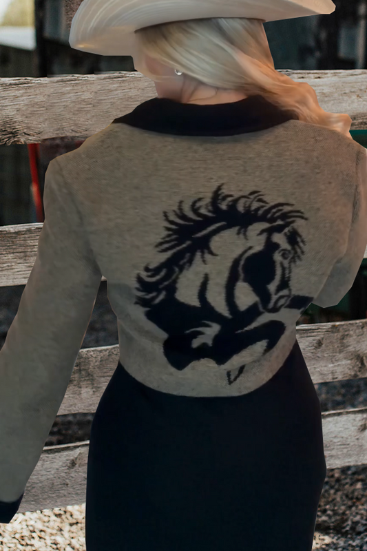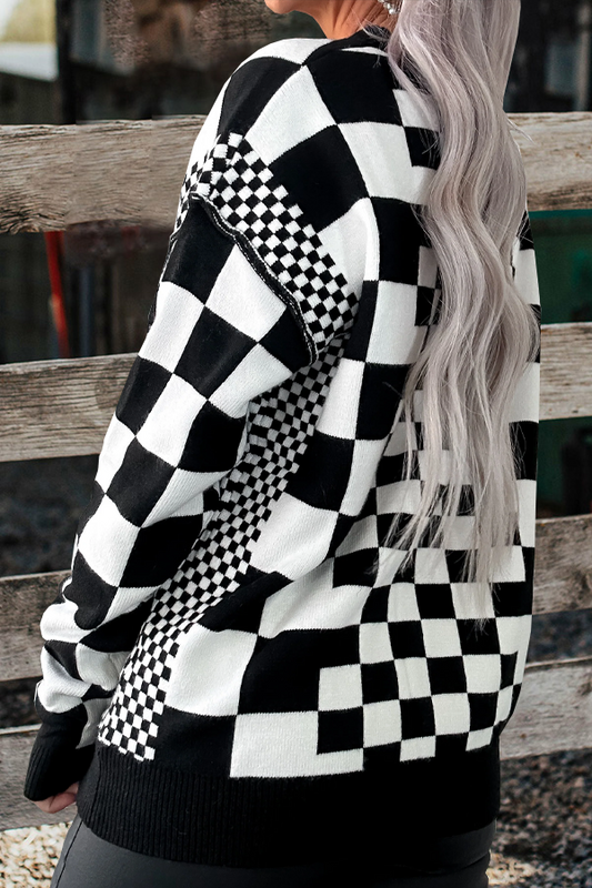 Women's Retro Jacquard crew neck side sleeve twist sweater