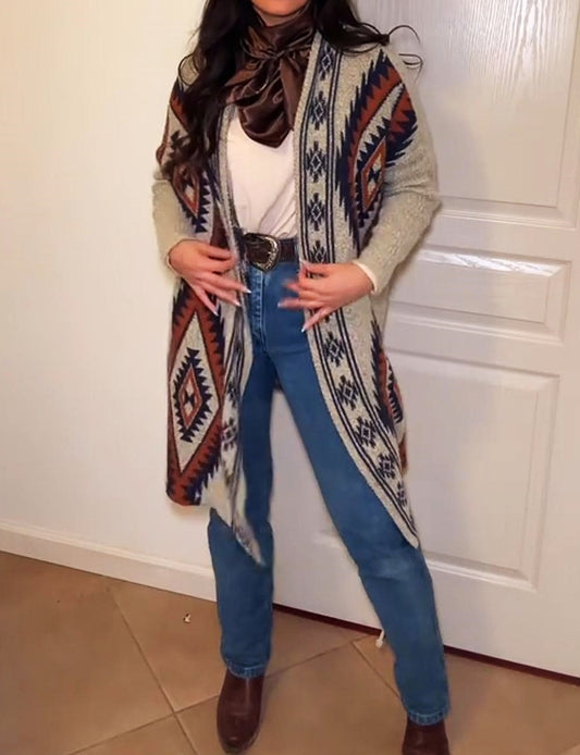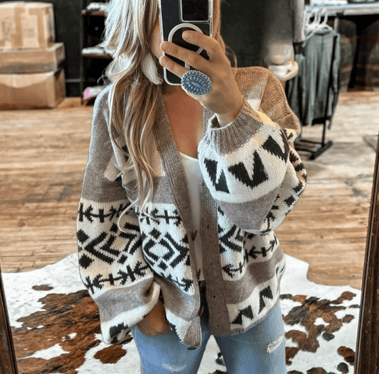 Vintage Aztec Print Distressed Bat Sleeve T-Shirt