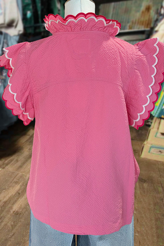 Chic Floral Print Button Detailed Ruffle Sleeve Top