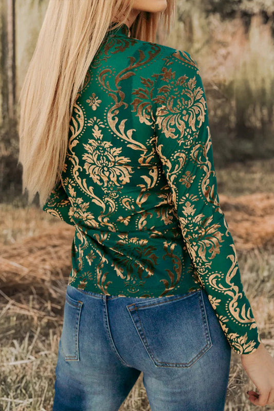 Vintage V-Neck Flared Sleeve Velvet Blouses