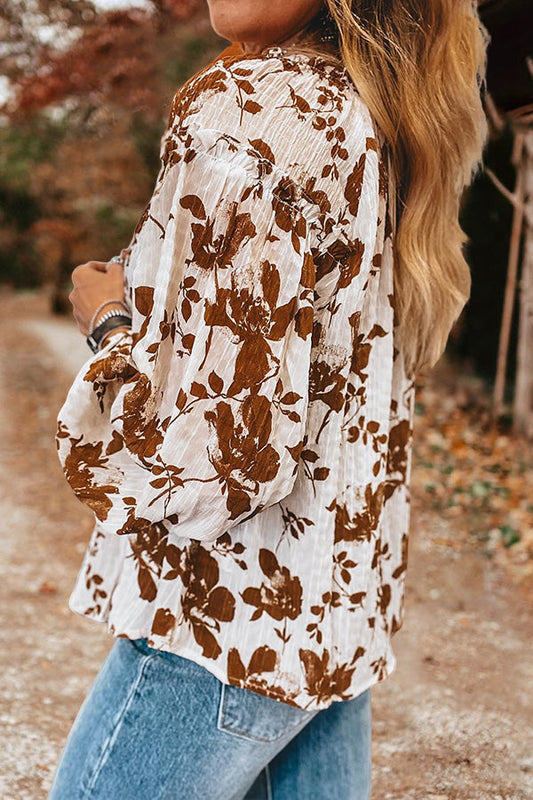 Leopard Prin Ruffle V-Neck Puff Sleeve Top