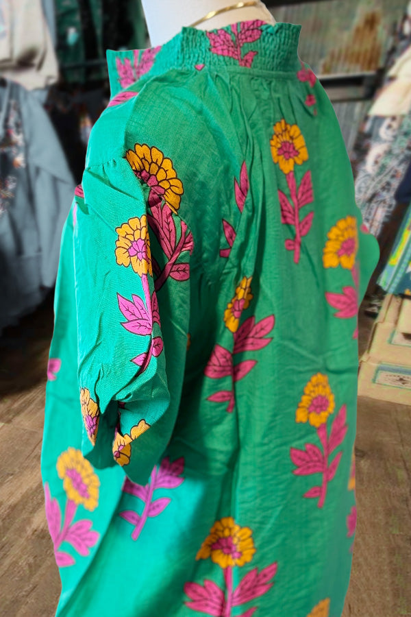 Bold Floral Print V-Neck Bubble Sleeve Top
