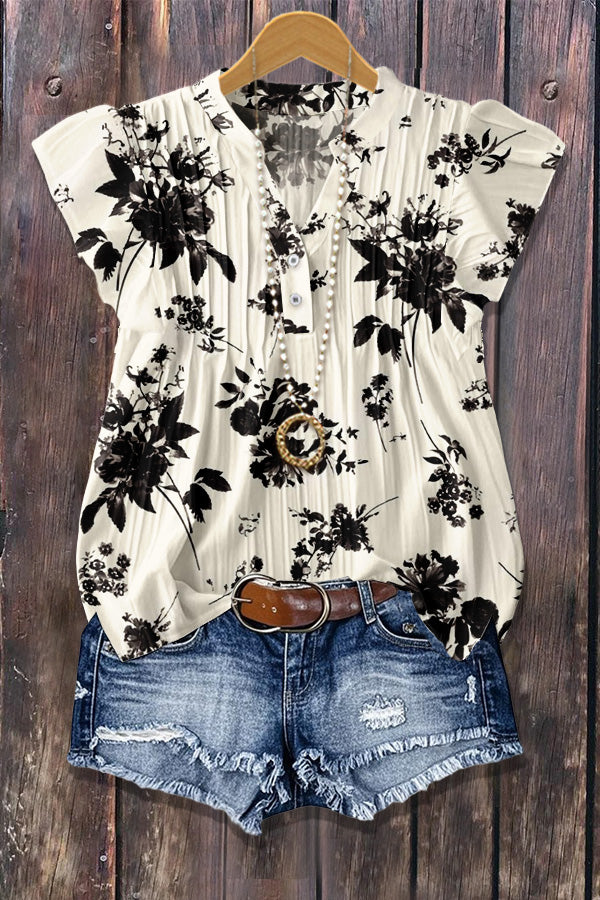 ZY0795Style: FashionType: TopMaterial: PolyesterPattern Type: Floral PrintSleeve Length: Short SleeveOccasion: CasualPackage Include: 1*TopNote: 1.Please strictly follow the size chart to select the size. Do not select according to your habits.2.The size may have 2-3cm differs due to manual measurement. Please note when you measure. Size(INCH)BustLengthS40.1625.59M42.1325.98L44.0926.38XL47.2427.172XL50.3927.953XL53.5428.74