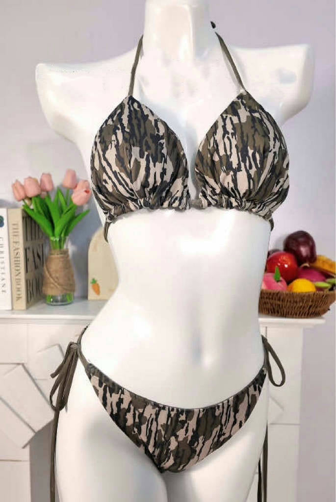 Meet our Kinsley top. In our original "Forest" print, this top is a classic triangle cut bikini with fully adjustable string ties.